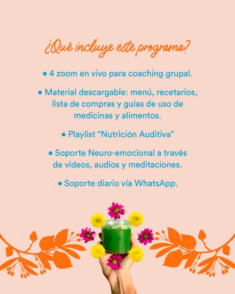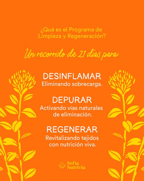 Es un proceso guiado de 21 días, donde trabajamos el cuerpo físico, energético y emocional a través de una propuesta integral de alimentación regenerativa, medicina natural y acompañamiento grupal.